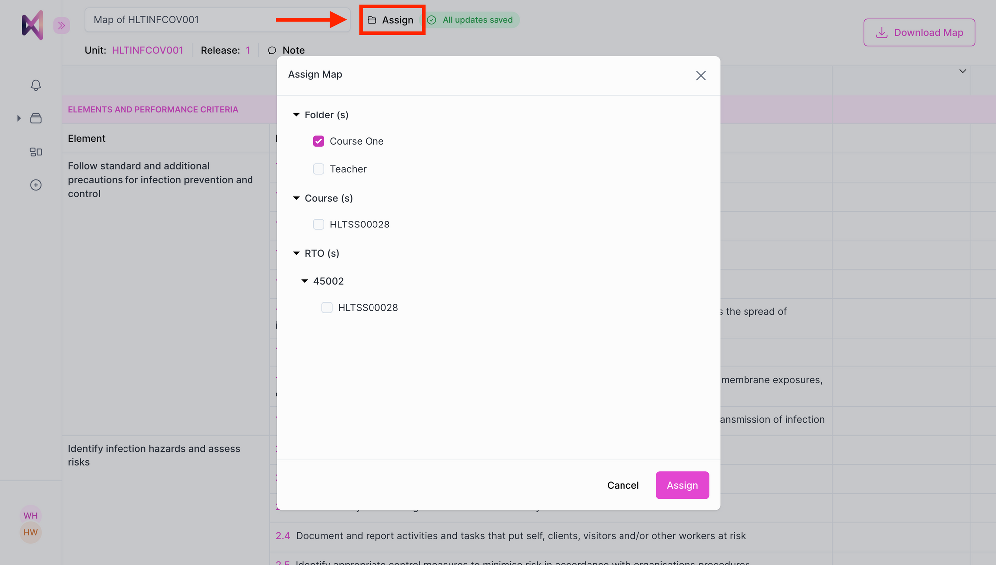 In case you need to assign your map to a different RTO number or course, simply use the “Assign" button while you're within a mapping session.