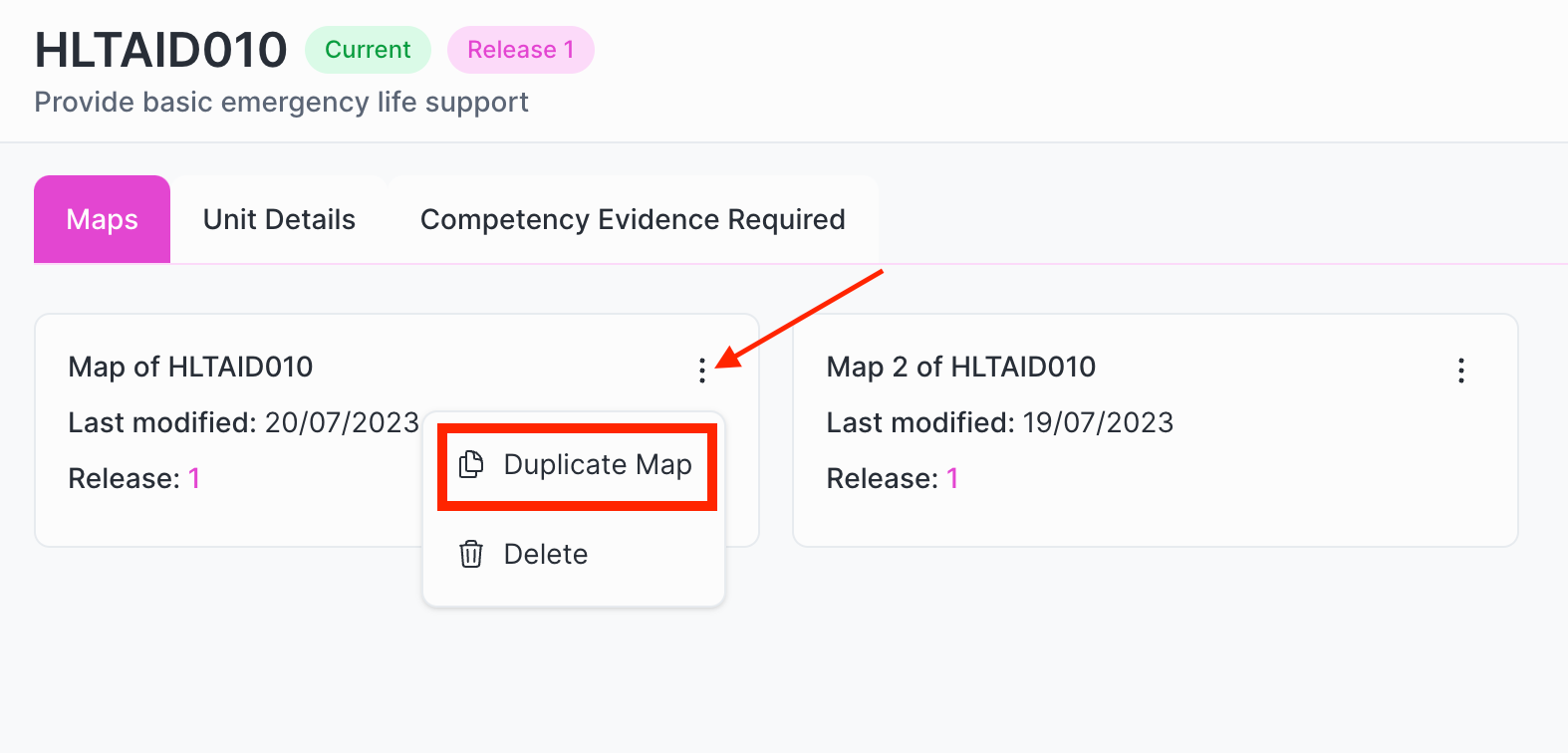 Need to create more than one map per unit? Simply create a new map or duplicate the map from the unit/map index.